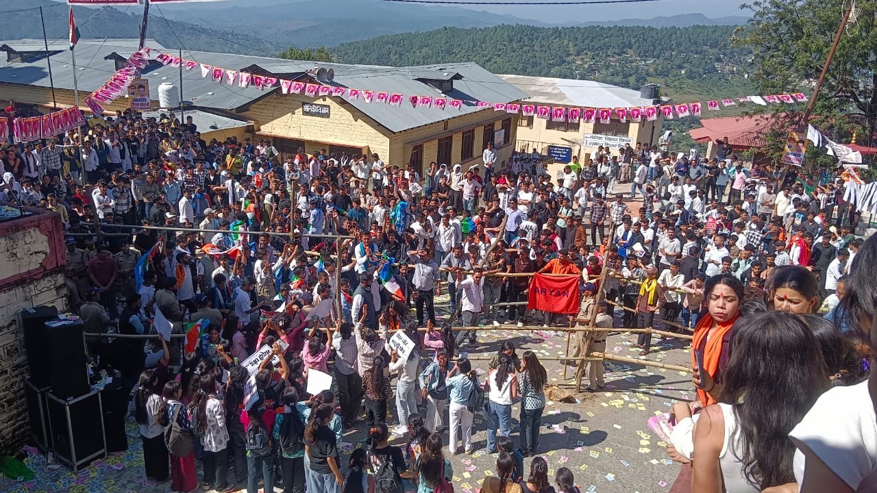 सोबन सिंह जीना परिसर में छात्रसंघ चुनाव को लेकर हुई आमसभा।