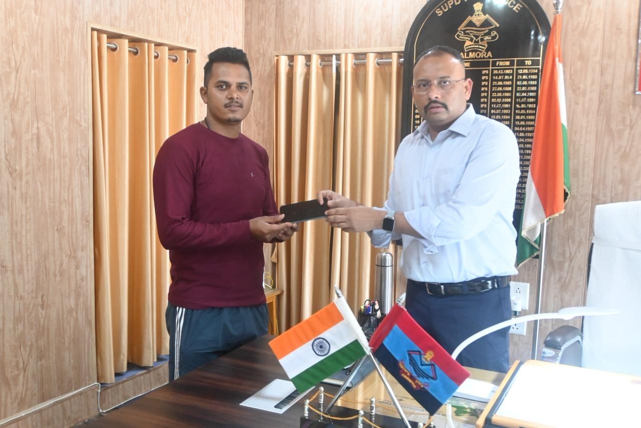 एसएसपी अल्मोड़ाद्वारा आज बरामद कीमती मोबाइलों को पुलिस कार्यालय अल्मोड़ा में उनके स्वामियों को सुपुर्द कर सभी को बधाई दी ।अपने खोये मोबाइल वापस पाकर सभी मोबाइल स्वामियों के चेहरे में खुशी झलक रही थी। उन्होंने कहा कि मोबाइल खोने पर वापस मिलने की उम्मीद खो चुके थे लेकिन अल्मोड़ा पुलिस पर विश्वास कायम था। पुलिस ने हमारे खोये फोन बरामद कर पुलिस के प्रति हमारे विश्वास को और अधिक बढ़ाया हैं। सभी ने अल्मोड़ा पुलिस के साईबर सेल टीम का आभार व्यक्त किया। पुलिस ने जनता से अपील की कि मोबाइल खोने पर तत्काल संचार साथी पोर्टल पर आम जनमानस भी स्वयं शिकायत दर्ज करा सकते है। साथ ही नजदीकी थाने या साइबर सेल को सूचित करें,जिससे आपके मोबाइल को रिकवर करने हेतु तत्काल कार्यवाही की जा सके।अल्मोड़ा सर्विलांस टीम जिनकी कडी मेहनत से यह सफलता पायी उनमें निरीक्षक भुवन जोशी, प्रभारी एसओजी, कानि0 चन्दन सिंह ,कानि0 हरीश प्रसाद,महिला कानि0 चम्पा दानू का सहयोग रहा।