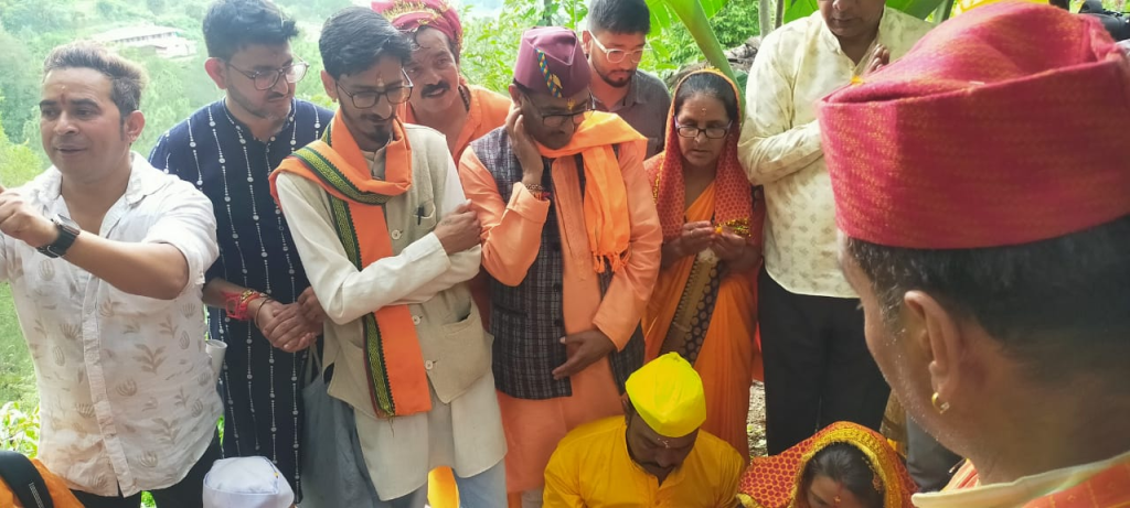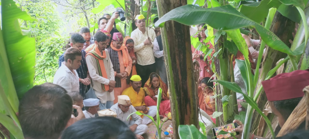 गांव पहुँचने पर सर्वप्रथम समिति के सदस्य एवं भक्तजन देवी थान मंदिर पहुँचे, जहाँ ग्राम की महिलाओं ने पारंपरिक भजनों की मधुर प्रस्तुतियाँ दीं। इसके बाद विधि–विधान के साथ मंदिर में पूजा-अर्चना की गई। पूजा के उपरांत समिति के पदाधिकारी, भक्तजन और स्थानीय ग्रामीण कदली वृक्ष के पास पहुँचे और माँ नंदा-सुनंदा के आगमन हेतु औपचारिक आमंत्रण दिया। इस दौरान पूरा क्षेत्र जयकारों से गूंज उठा।