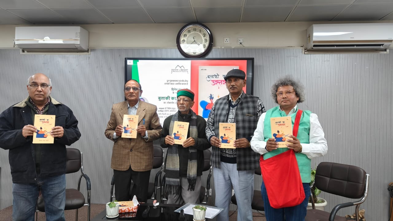 देहरादून,1 दिसम्बर, 2025 को दून पुस्तकालय व शोध केन्द्र में सांय 4 बजे से साहित्यकार दिनेश चन्द्र जोशी के व्यंग्य संग्रह ‘बुलाकी का उस्तरा’ का लोकार्पण व चर्चा का कार्यक्रम हुआ । इस कार्यक्रम की अध्यक्षता करते हुए सुप्रसिद्ध कथाकार जितेन ठाकुर ने कहा कि दिनेश चन्द्र जोशी,व्यंग्यकार के साथ साथ कथाकार व संवेदनशील कवि भी हैं। उनके व्यंग्य भी कथा शैली में लिखे हुए हैं। जिस कारण उनके लेखन में पठनीयता बरकरार रहती है।