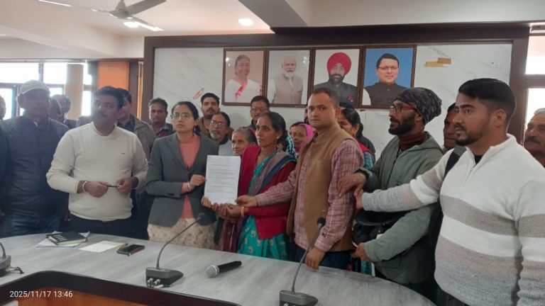 अल्मोड़ा=पूनाकोट व भैसियाछाना क्षेत्र के ग्रामीणों ने आज गोलखाता (गोचर) की भूमि पर सक्रिय भूमाफियाओं द्वारा कथितअवैध कब्जे एवं बाहरी व्यक्तियों को जमीन बेचे जाने के विरोध में जिला कलेक्टरेट,