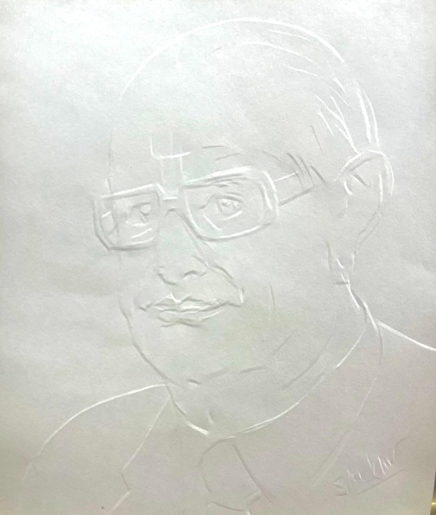 विशेषज्ञ चित्रकार प्रो. शेखर चन्द्र जोशी ने प्रतिभागियों को एक अनूठी विधा (कागज़ पर नाखूनों से उभार देकर – नखक्षत कला) से अवगत कराया
