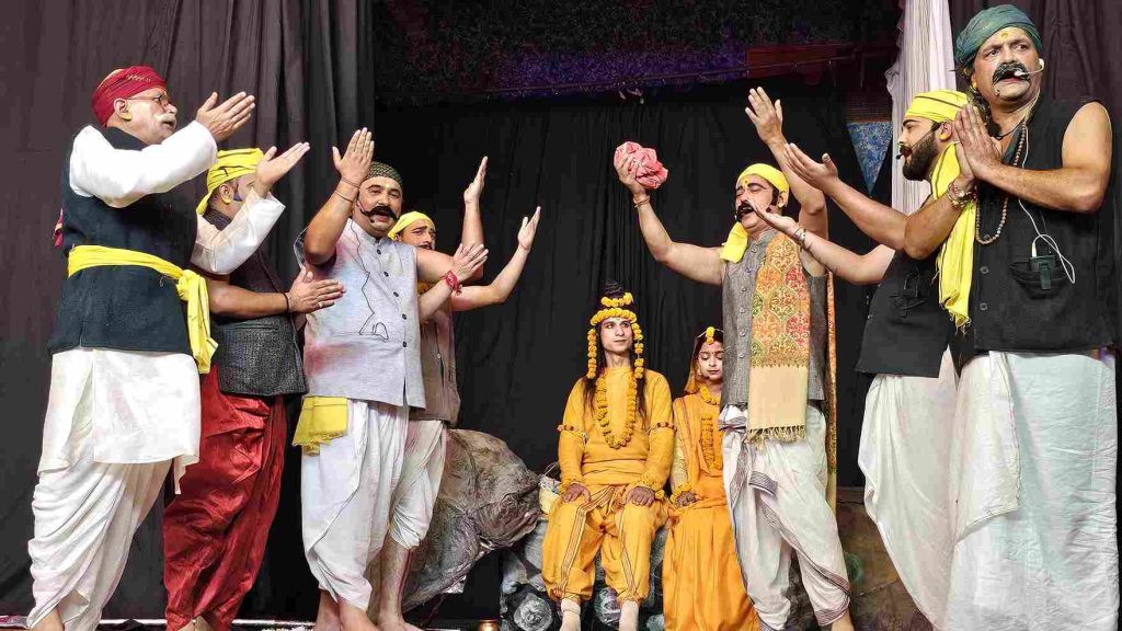 Almora-सांस्कृतिक नगरी अल्मोड़ा और समूचे कुमाऊँ की सबसे प्राचीन एवं ऐतिहासिक रामलीला — श्री नंदादेवी रामलीला के पंचम दिवस की रामलीला में राम सीता लक्ष्मण वन गमन, सुमंत प्रसंग, केवट प्रसंग, भिल्ल प्रसंग, वनवासिन प्रसंग, भरत कैकई प्रसंग, शत्रुघ्न मंथरा प्रसंग दशरथ विलाप, दशरथ मरण और चित्रकूट मिलन की प्रभावशाली प्रस्तुतियाँ मंचित की गईं।