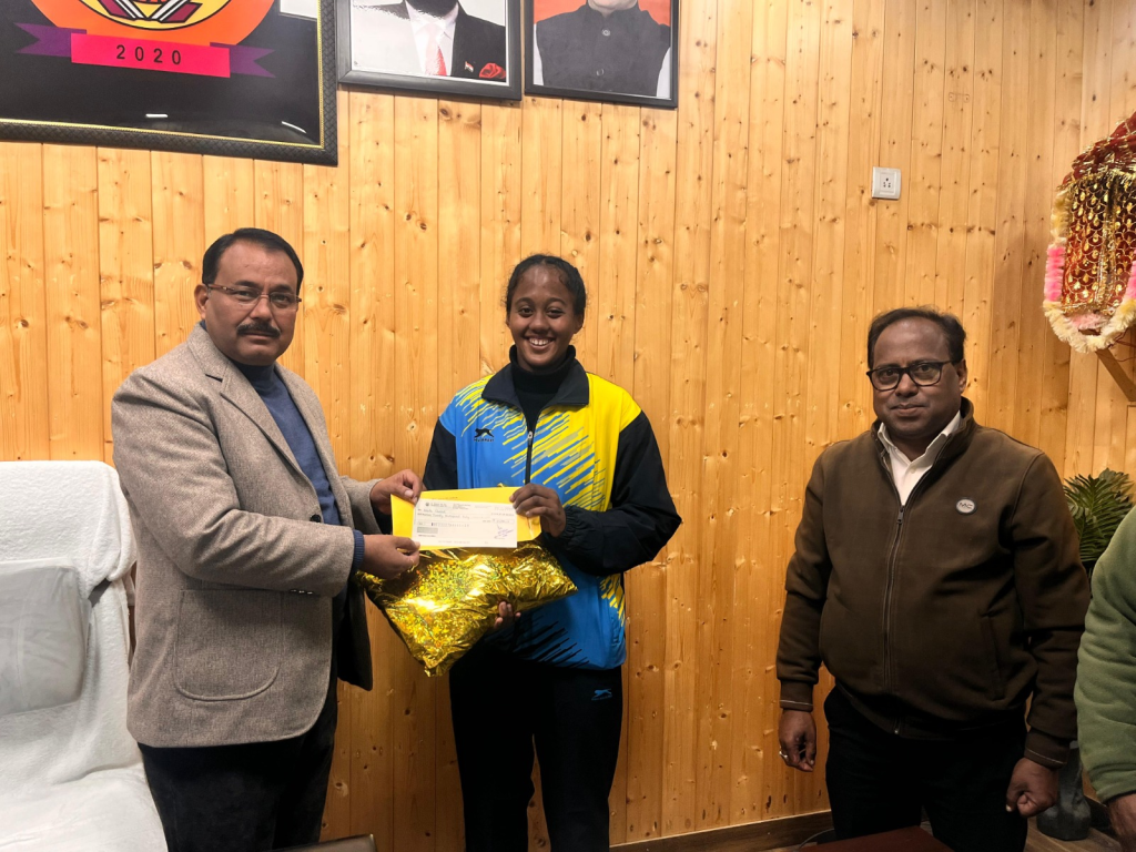 विश्वविद्यालय के कुलपति प्रो सतपाल सिंह बिष्ट ने पदक प्राप्त कर विश्व विद्यालय का नाम रोशन करने वाली दोनों महिला बॉक्सरों निकिता चंद को बीस हजार और कोमल मेहता को चौदह हजार रुपये चेक देकर सम्मानित किया तथा उन्हे खेलो भ विश्वविद्यालय खेल 2025 में प्रतिभाग करने की शुभकामनाएं दी। इस अवसर पर वित्त अधिकारी श्री अमित कुमार त्रिपाठी, विश्वविद्यालय क्रीड़ा प्रभारी श्री लियाकत अली उपस्थित रहे।