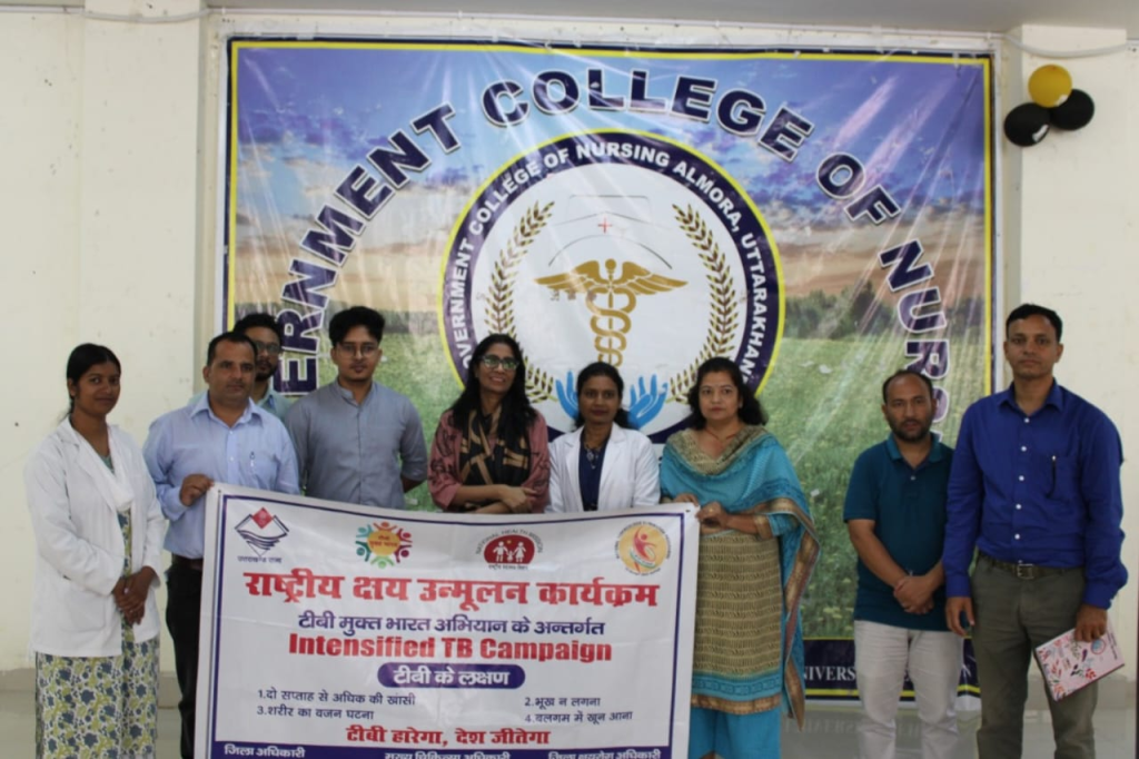Almora- राष्ट्रीय टी बी उन्मूलन कार्यक्रम के अंतर्गत प्रधानमंत्री टी बी मुक्त भारत अभियान के सफल संपादन हेतु उच्च जोख़िम समूह के नागरिकों का वर्तमान में गतिमान इंटेंसिफाइड टीबी कैंपिंग कार्यक्रम के अंतर्गत डिजिटल हैंड हेल्ड एक्सरे मशीन के माध्यम से टी बी की जांच किए जाने हेतु भारत सरकार द्वारा निर्देशित किया गया है जिसके क्रम में राजकीय नर्सिंग कॉलेज अल्मोड़ा में अध्यनरत छात्र छात्राओं के मध्य प्रचार प्रसार हेतु एक गोष्ठी कार्यक्रम आयोजित गया जिसमें उक्त संस्थान में अध्यनरत छात्र छात्राओं के डिजिटल हैंड
