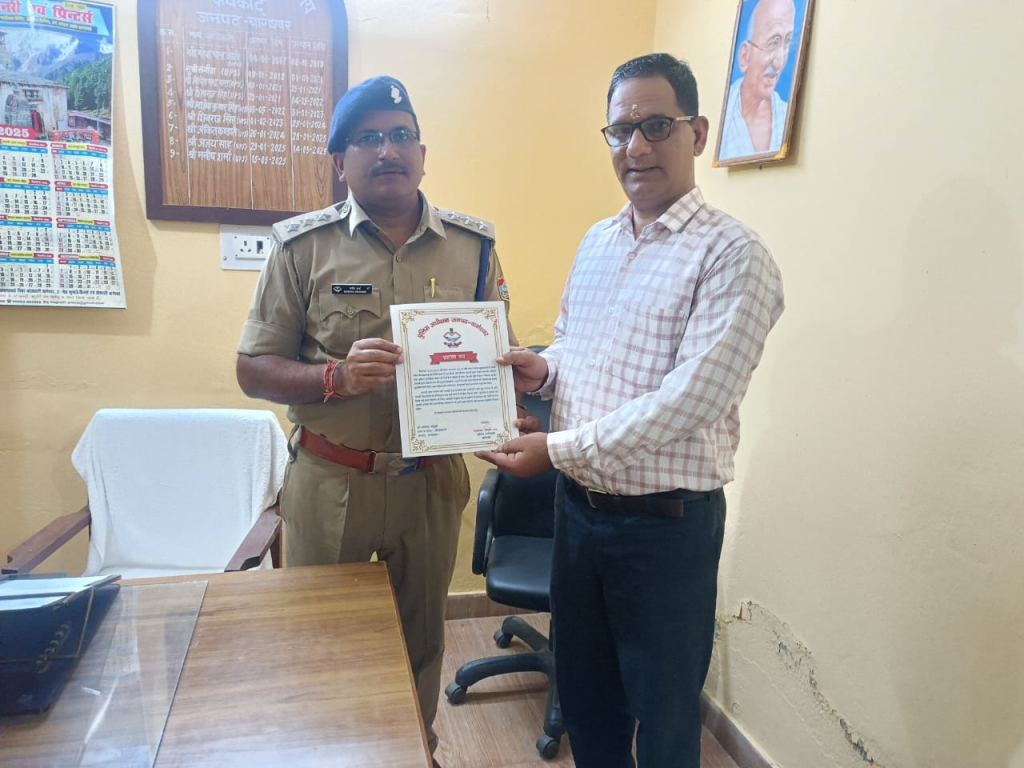 बागेश्वर। सड़क दुर्घटनाओं में घायल व्यक्तियों की सही समय पर मदद कर अस्पताल पहुंचाने एवं पुलिस को सूचित करने वाले 02 व्यक्तियों संजय साह जगाती, पूर्व चेयरमेन रेडक्रास सोसायटी एवं अशोक लोहुमी, ग्राम जौलकाण्डे, जनपद बागेश्वर को पुलिस उपाधीक्षक कपकोट, यातायात मनीष शर्मा द्वारा आज पुलिस कार्यालय में प्रस्तति पत्र देकर (Good Samaritan) नेक व्यक्ति सम्मान से सम्मानित किया गया। उन्होंने बताया कि जनपद बागेश्वर में सड़क दुर्घटना बचाव के लिए लोगों को जागरुक, प्रेरित करने के लिए गुड सेमेरिटन पुरुस्कार से, मददगारों को आगे भी सम्मानित किया जाता रहेगा।