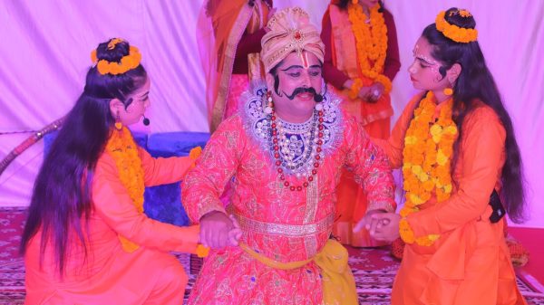 Almora-श्री भुवनेश्वर महादेव मंदिर एवं रामलीला समिति कर्नाटक खोला अल्मोडा में पंचम दिवस की लीला में राम का वन गमन,सुमन्त विलाप,केवट प्रसंग,सीता-वनवासिन प्रसंग, श्रवण भक्ति,दशरथ मरण और भरत मिलाप आदि का सुन्दर मंचन किया गया । राम की पात्र रश्मि काण्डपाल, लक्ष्मण -कोमल जोशी, सीता -वैष्णवी पवार,सुमन्त-दीपक पाण्डे,भरत-वैष्णवी जोशी,शत्रुघ्न-निशा काण्डपाल,दशरथ-चिरंजीवी लाल वर्मा,निषादराज-अशोक बनकोटी, केवट प्रसंग में-सन्तोष जोशी,कमल जोशी ,अनिल जोशी, हिमांशी अधिकारी, अमर बोरा आदि,कैकेई-मेघा काण्डपाल,कौशिल्या-मीना भट्ट, सुमित्रा-नेहा जोशी, युवा दशरथ-अखिलेशसिंह थापा,श्रवण कुमार-राहुल जोशी,श्रवण कुमार की माता इशिका अस्वाल ,नित्या सिंह आदि कलाकारों ने जीवन्त अभिनय किया तथा दर्शकों एवं आन-लाईन संदेशों के माध्यम से काफी सराहना बटोरी ।