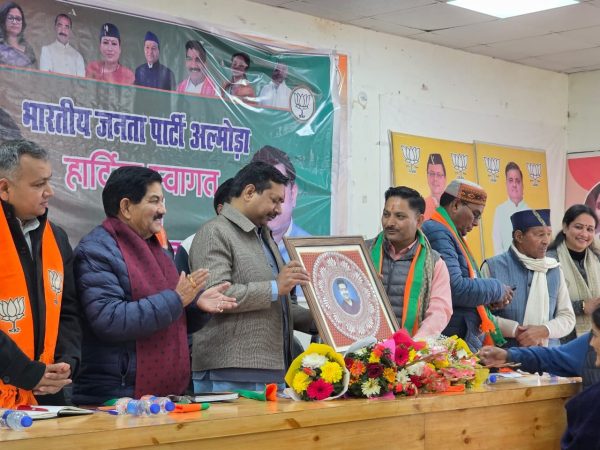 अल्मोड़ा। भारतीय जनता पार्टी अल्मोड़ा जिला की जिला बैठक का शुभारंभ दीप प्रज्वलन के साथ हुआ। तत्पश्चात वंदे मातरम् का सामूहिक गान किया गया। बैठक में उत्तराखंड प्रदेश संगठन महामंत्री अजेय कुमार का भाजपा कार्यकर्ताओं द्वारा भव्य एवं गरिमामय स्वागत किया गया।