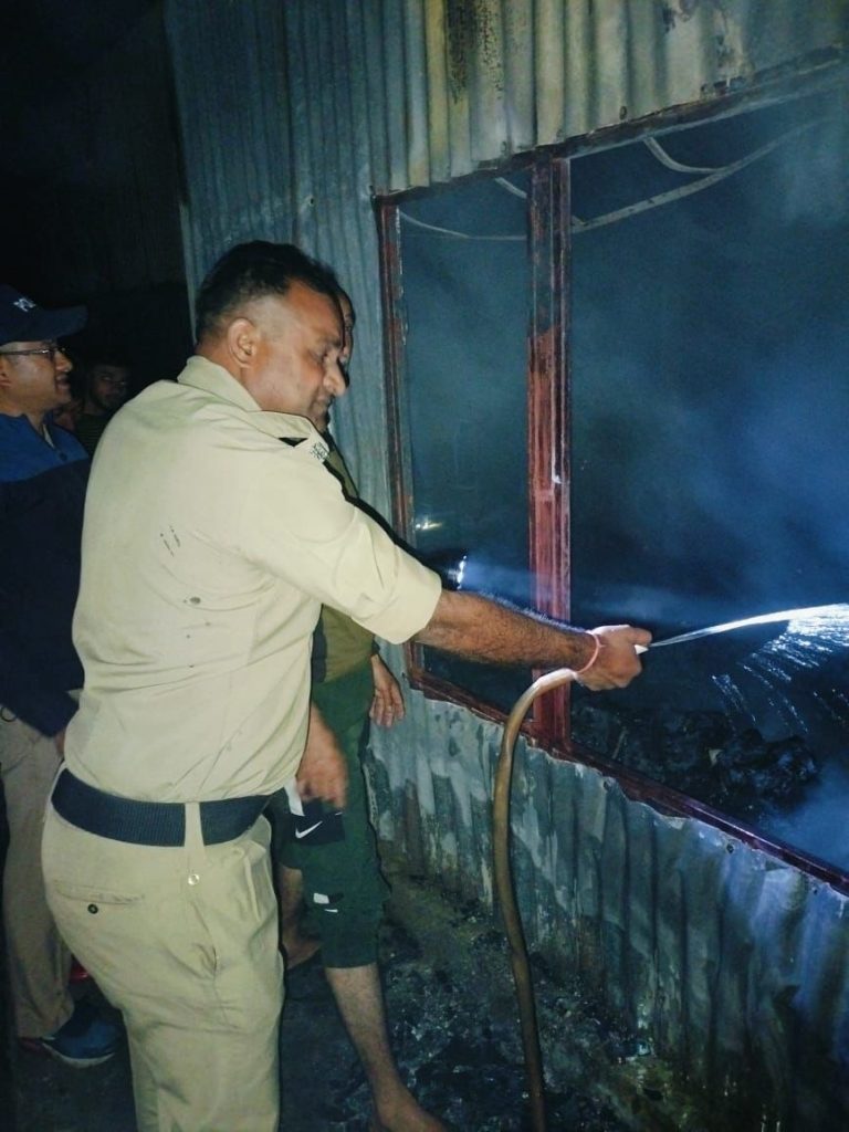 रात्रि लगीं आग लमगड़ा पुलिस पहुंची मौके पर