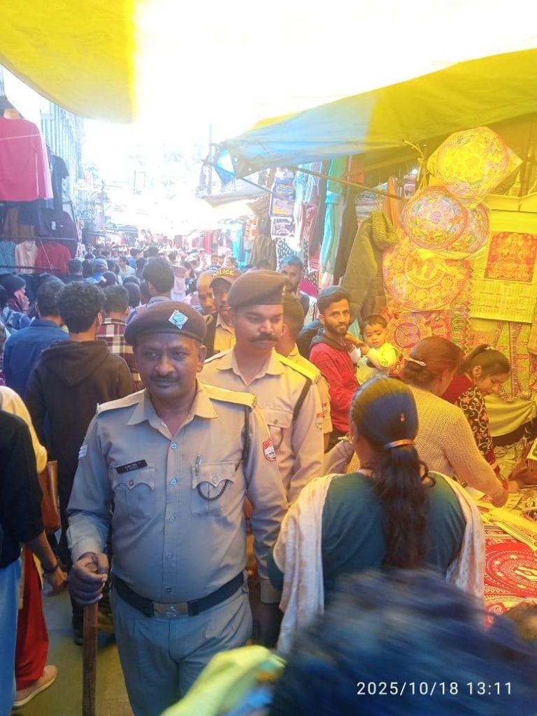 दीपावली त्योहारों के चलते बाजारों में पिकेट, गश्त, पेट्रोलिंग ड्यूटियों पर पुलिस जवान मुस्तैद