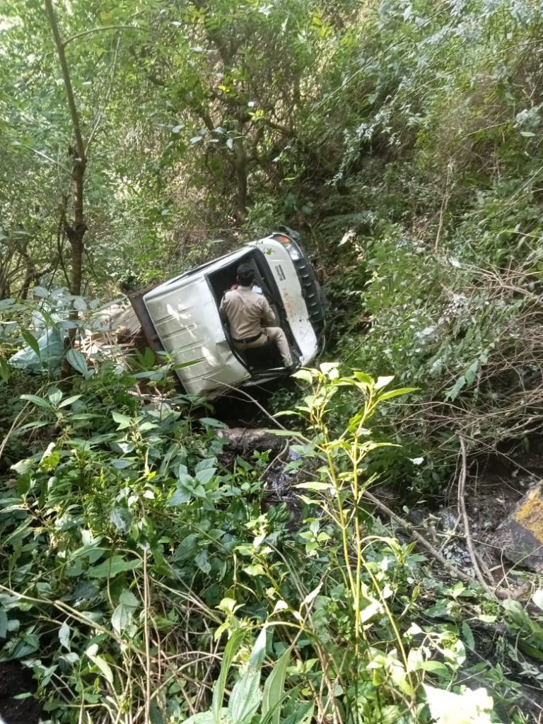 अल्मोड़ा।आज छोटा हाथी न0. UP14QT 8045 जो अल्मोड़ा से पिथोरागढ जा रहा था। झांकरसेम मोड़ जागेश्वर के पास अनियंत्रित होने के कारण सड़क से 150 मीटर नीचे गिर गयी है।
