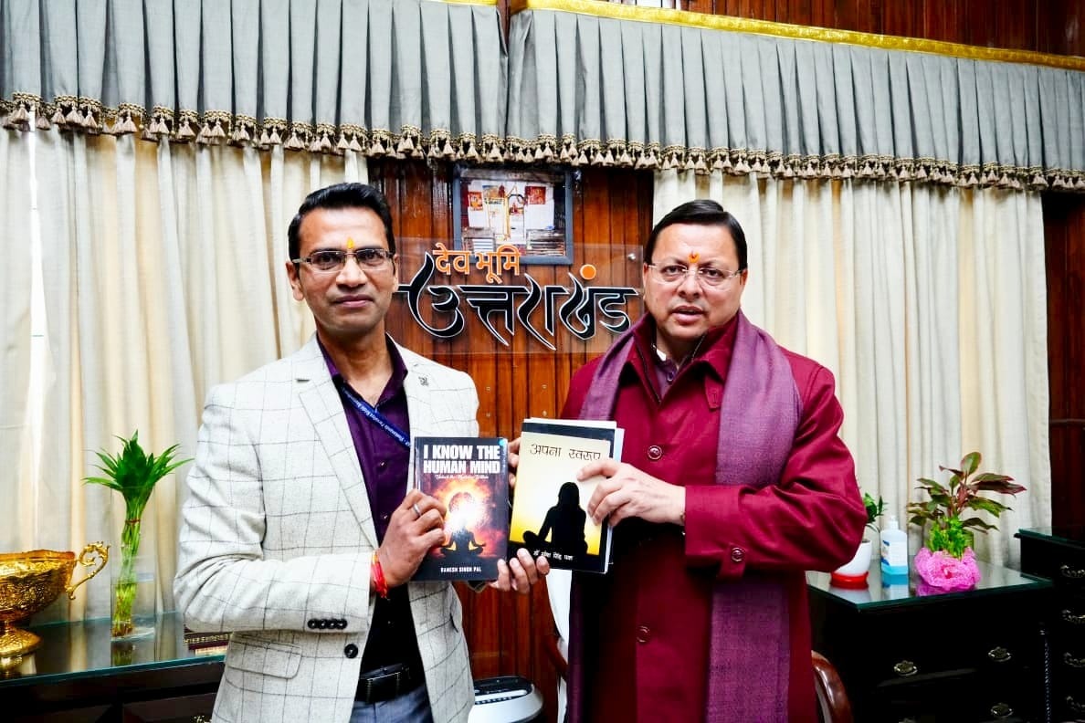 डॉ रमेश सिंह पाल द्वारा लिखित पुस्तक “मनस-विद” का विमोचन मुख्यमंत्री पुष्कर सिंह धामी ने किया