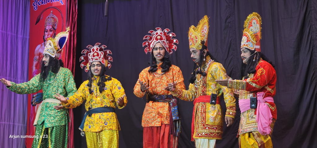 श्री नंदादेवी रामलीला कमेटी-प्रथम दिवस में रावण अत्याचार, देवगण स्तुति, राम जन्म और सीता जन्म की प्रस्तुति दी।
