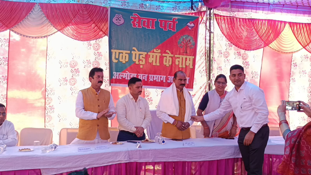 सेवा पखवाड़ा कार्यक्रम के अन्तर्गत एक पेड़ मों के नाम पर मा० राज्यमंत्री भारत सरकार द्वारा क्षेत्र में रुद्राक्ष पौध का पौधारोपण किया गया। क्षेत्र अन्तर्गत भव्य वृक्षारोपण कार्यकम में 108 से अधिक रुद्राक्ष, बेलपत्र, माल्टा पदम, चमखड़िक, नीबू व अन्य प्रजातियों के पौधों का पौधारोपण कार्य किया गया। कार्यक्रम में विक्टर मोहन जोशी राजकीय बालिका इण्टर कॉलेज व गुरु एकडमी, पपरसली, अल्मोड़ा के 50 से अधिक छात्र-छात्राओं द्वारा भी प्रतिभाग किया गया। प्रभागीय वनाधिकारी, अल्मोड़ा द्वारा जन कल्याण से सम्बन्धित कार्यकमों की जानकारी प्रदान करते हुए व वृक्षारोपण अन्तर्गत पौधों की सुरक्षा हेतु आवश्यक जानकारी प्रदान की गयी। इस कार्यक्रम में उपाध्यक्ष राज्य महिला उद्यमिता परिषद गंगा बिष्ट, पूर्व विधानसभा उपाध्यक्ष रघुनाथ सिंह चौहान, पूर्व विधायक कैलाश शर्मा जिला अध्यक्ष भाजपा महेश नयाल, जिलाधिकारी आलोक कुमार पाण्डे, वरिष्ठ पुलिस अधीक्षक देवेन्द्र पिंचा, मुख्य विकास अधिकारी रामजी शरण शर्मा, उप प्रभागीय वनाधिकारी काकुल पुण्डीर, वन क्षेत्राधिकारी एम०आर०आर्या सहित वन क्षेत्र अल्मोड़ा व विभिन्न अनुभाग अधिकारियों, वन दरोगाओं एवं वन बीट अधिकारियों व सिविल सोयम वन प्रभाग अल्मोड़ा के अधिकारियों एवं कर्मचारियों द्वारा भी प्रतिभाग किया गया।