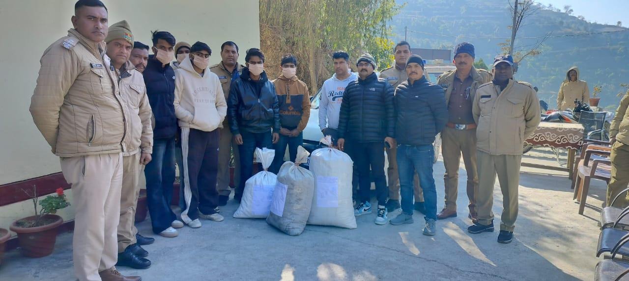 Almora-प्रभारी एसओजी निरीक्षक भुवन चन्द्र जोशी व थानाध्यक्ष सल्ट कश्मीर सिंह के नेतृत्व में दिनांक- 15.01.2026 को एसओजी व सल्ट पुलिस टीम द्वारा कटपतिया तिराहे के पास चेकिंग के दौरान स्विफ्ट डिजायर UK07-AX-8384 में सवार 05 युवकों के कब्जे से कुल 44.930 Kg गांजा बरामद किया गया। 05 अभियुक्तगणों को गिरफ्तार करते हुए थाना सल्ट में मु0अ0स0-05/26 धारा-8/20/60 NDPS एक्ट के तहत एफआईआर पंजीकृत कर आवश्यक कार्यवाही की गई। कार को सीज किया गया।