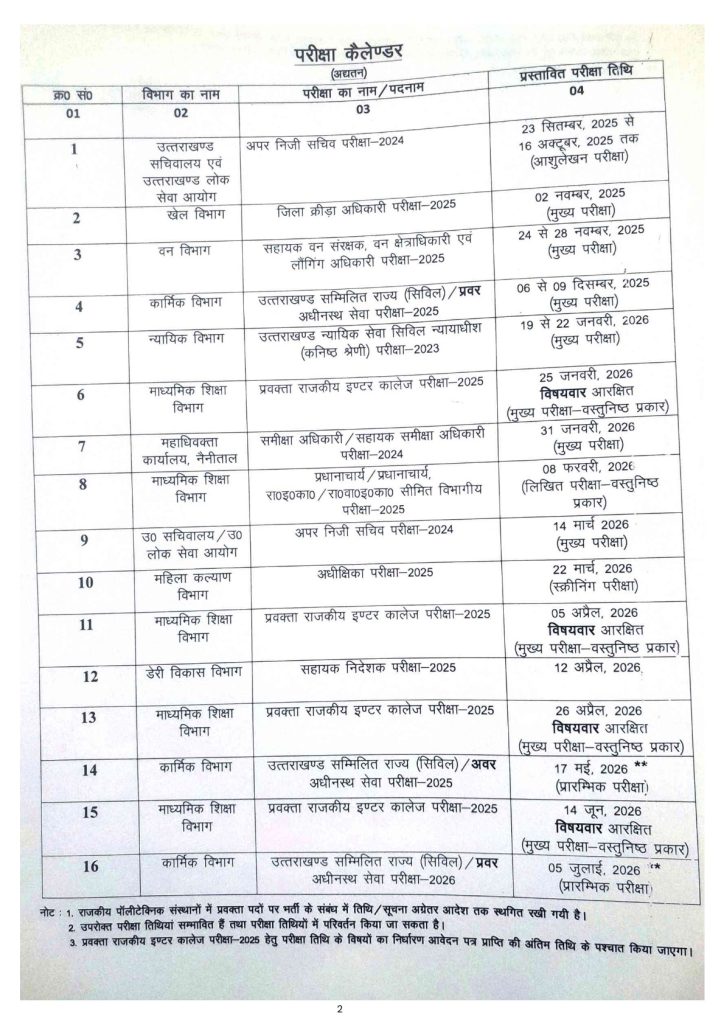 उत्तराखंड लोक सेवा आयोग ने जारी किया परीक्षा कैलेंडर